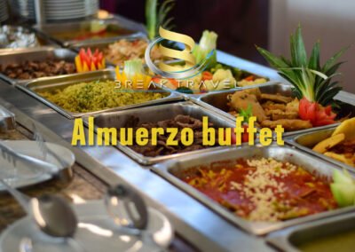 Cómodas habitaciones con capacidad máxima de 4 personas con vista al mar o laguna, Servicio buffet.